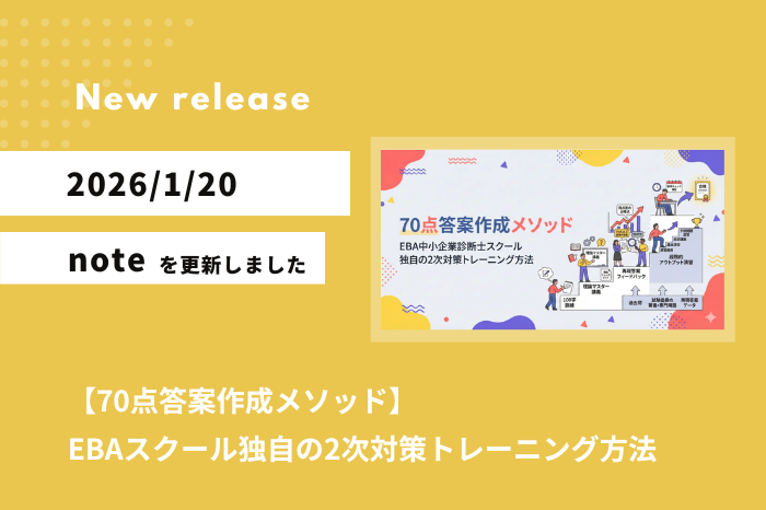 EBA中小企業診断士スクールのnoteでは、令和8年度の中小企業診断士試験の対策に関するお役立ち情報を発信しています。